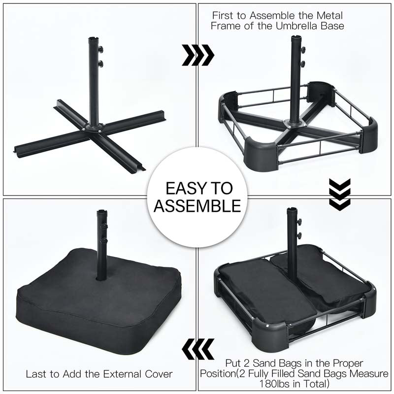 - Ultimate Shade Solution: The generously sized double-sided umbrella creates a vast canopy of shade, keeping your dining area cool during hot summer days. And the umbrella stand with 2 weighted sandbags (sand not included) can weigh 180 lbs when fully filled, preventing the umbrella from tipping over.