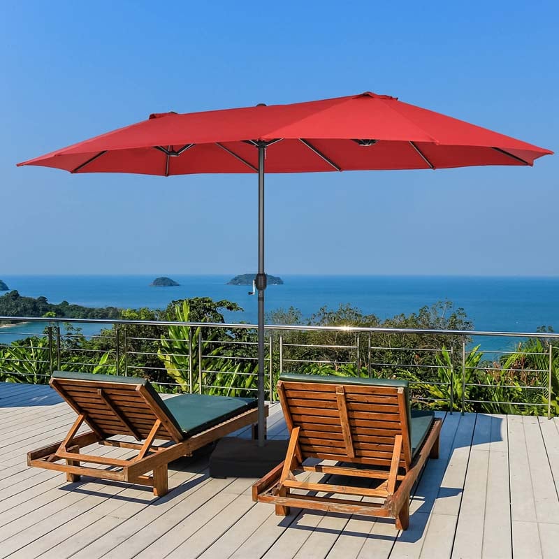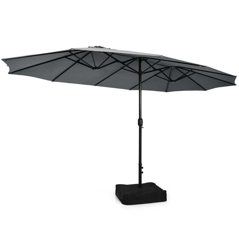 - Double-Sided Design for Larger Shaded Area: This patio umbrella is characterized by its 15ft double-sized canopy, which provides extra-large shading coverage for your whole family and friends. So you can put furniture set under the umbrella to relax and enjoy the breeze during leisure time.