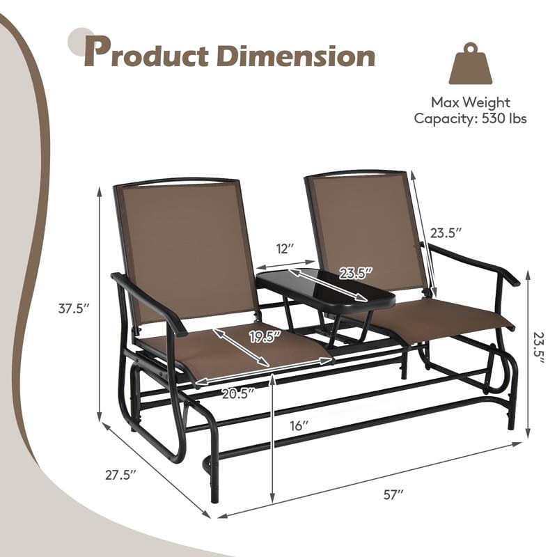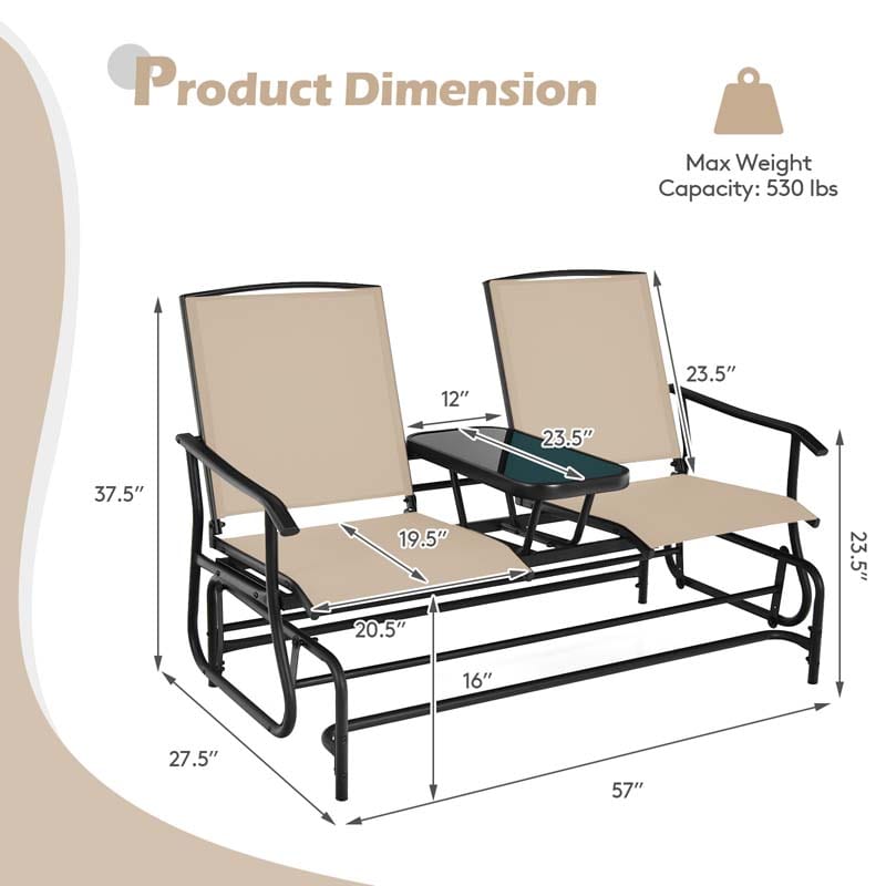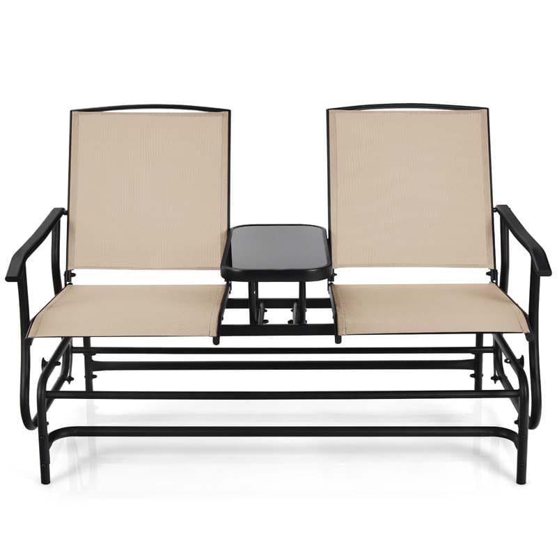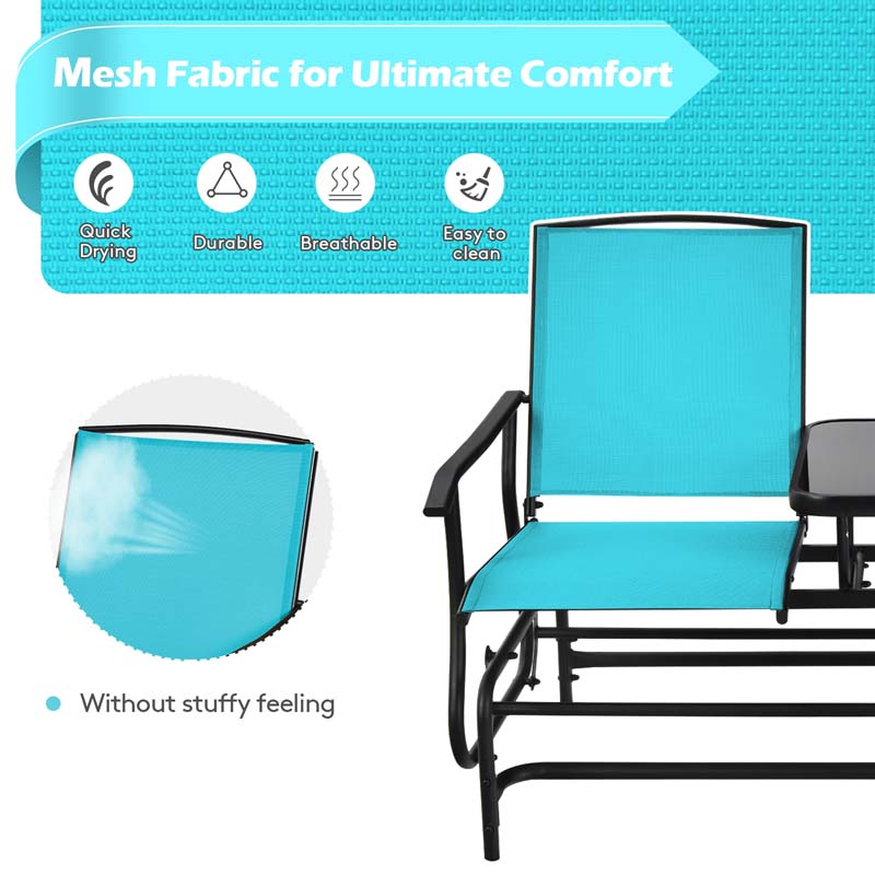 2-Person Outdoor Glider Bench with Center Table, Mesh Fabric Patio Double Rocking Loveseat Chair for Backyard, Poolside