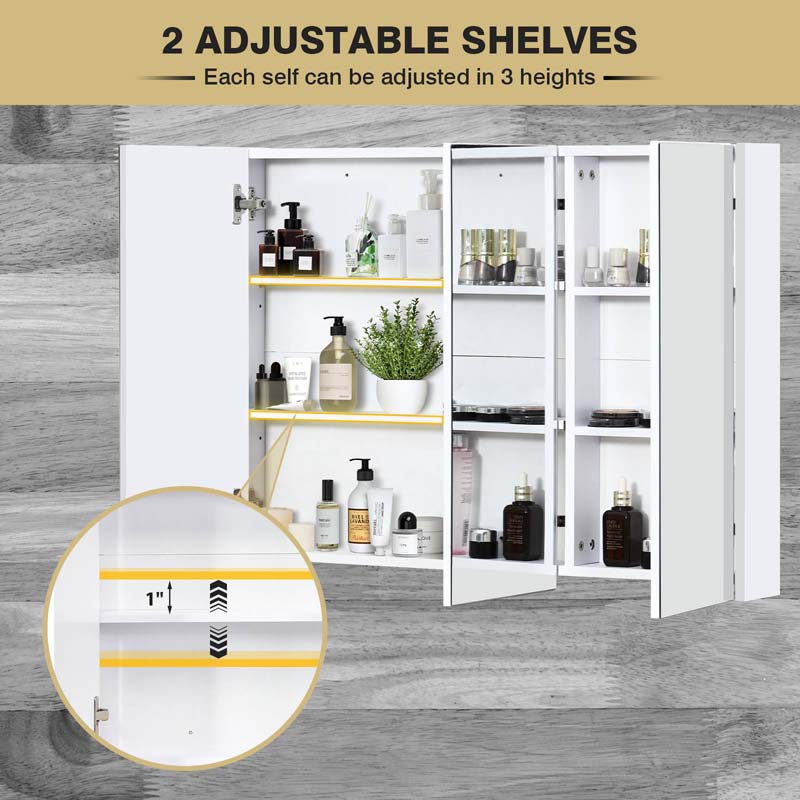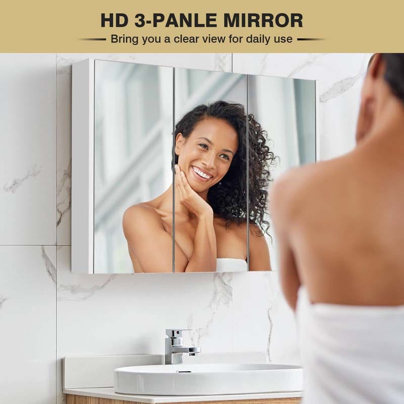 - Practical 3-Panel Mirrored Doors: With 2-in-1 multifunctional design, our bathroom wall cabinet combines a storage cabinet and a wall mirror, which will largely facilitate your daily routine. Also, the high definition 3-panel mirror brings you a clear view for daily use, suitable for making up or shaving.