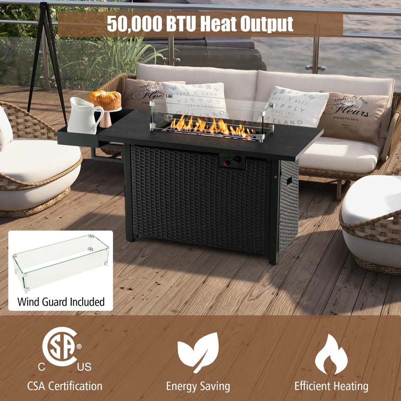 52" 50,000 BTU Outdoor Wicker Gas Fire Pit Propane Fire Table with Waterproof Cover, Wind Guard & Extended Storage Shelf for Patio Backyard