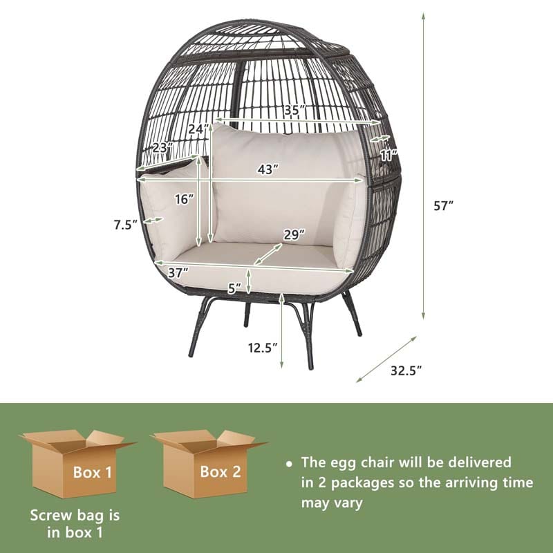 - 2-Boxes Delivery: This egg chair is shipped in 2 boxes so that the arrival time may vary. Thanks for your waiting. And box 1 includes all required screws for easy installation. Please do not tighten all the screws until all the holes are aligned.