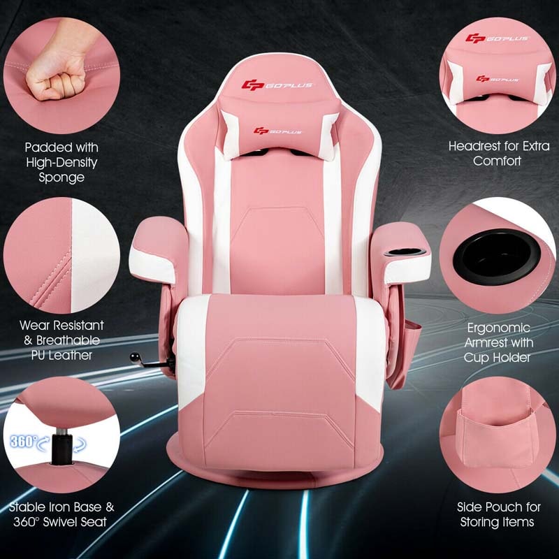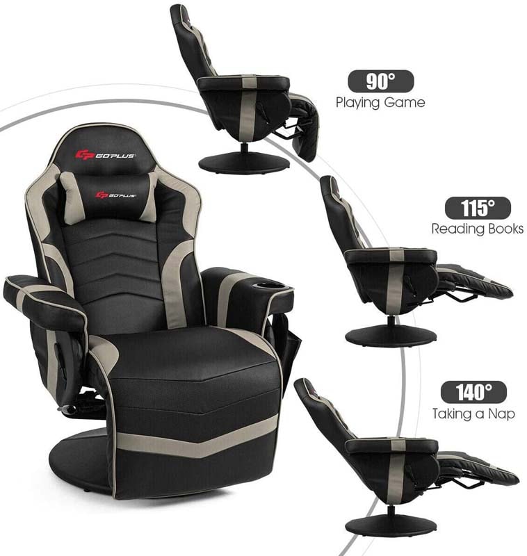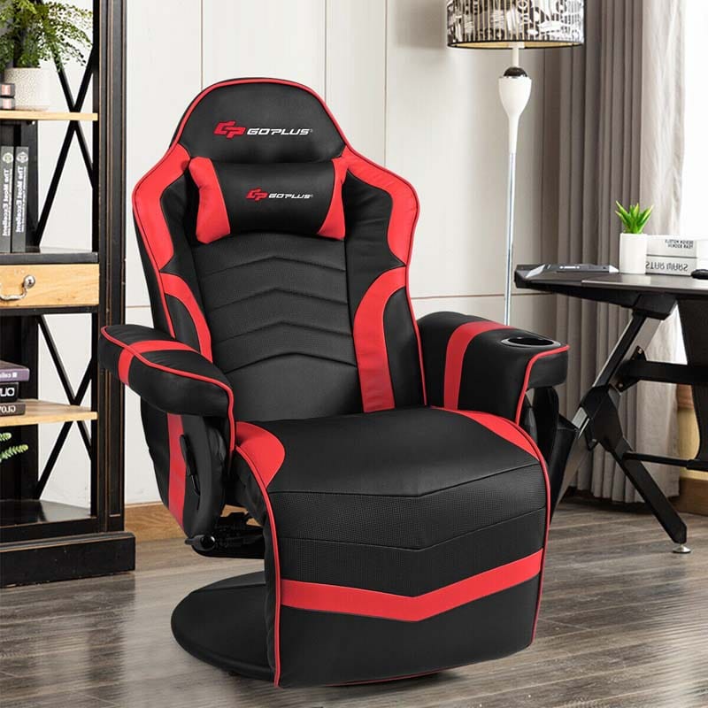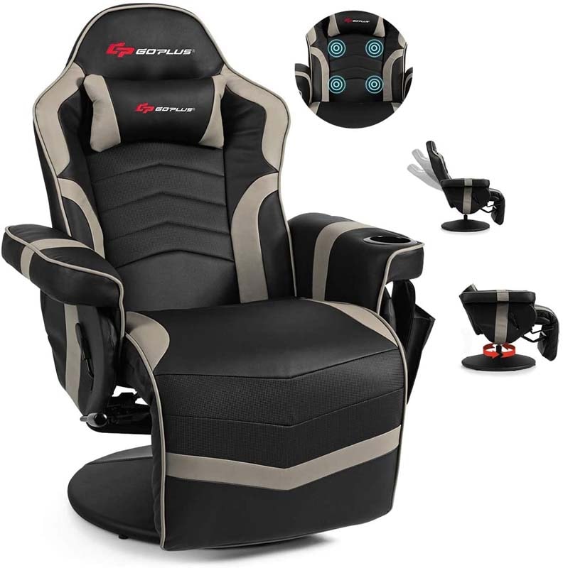 PU Leather Massage Gaming Chair, Ergonomic High Back Racing Style Gaming Recliner with Adjustable Backrest & Footrest, Cup Holder, Side Pouch