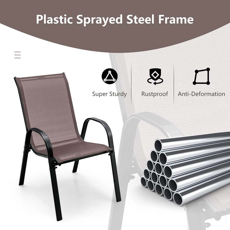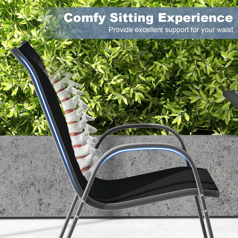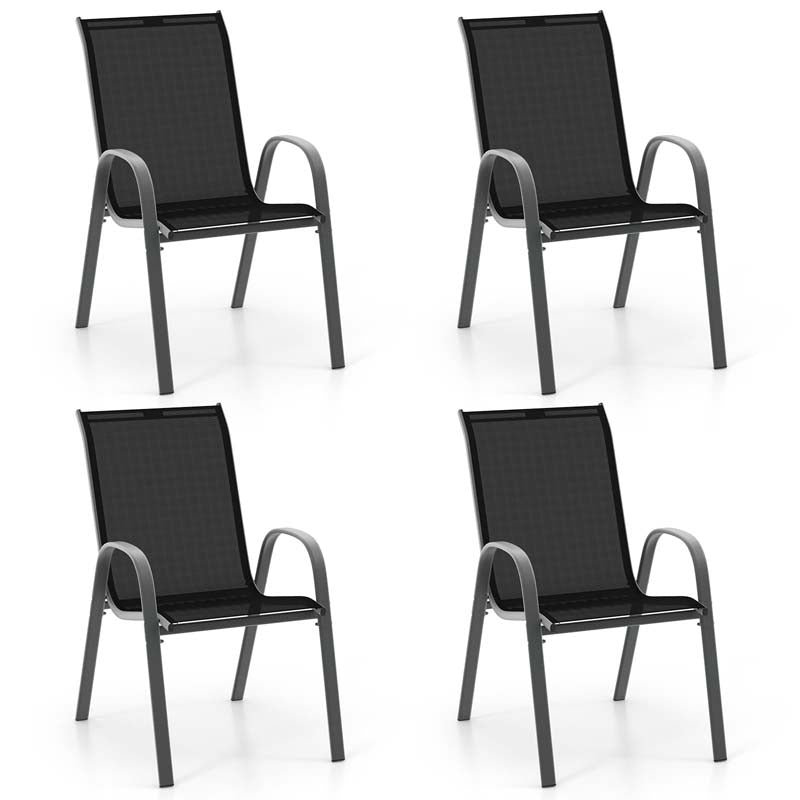 Set of 4 Outdoor Stackable Dining Chairs w/Breathable Fabric, All Weather Heavy Duty Rustproof Steel Frame Patio Lawn Chairs
